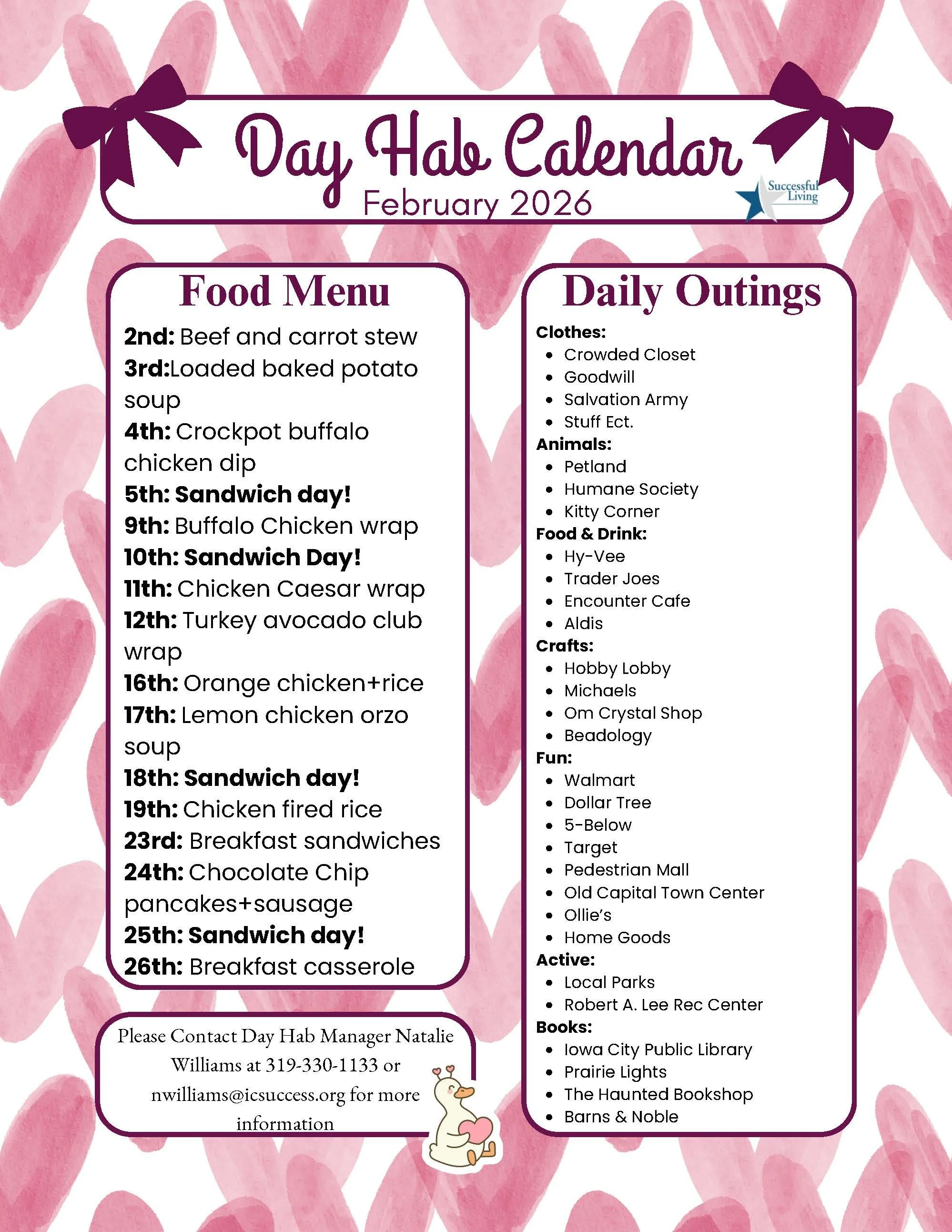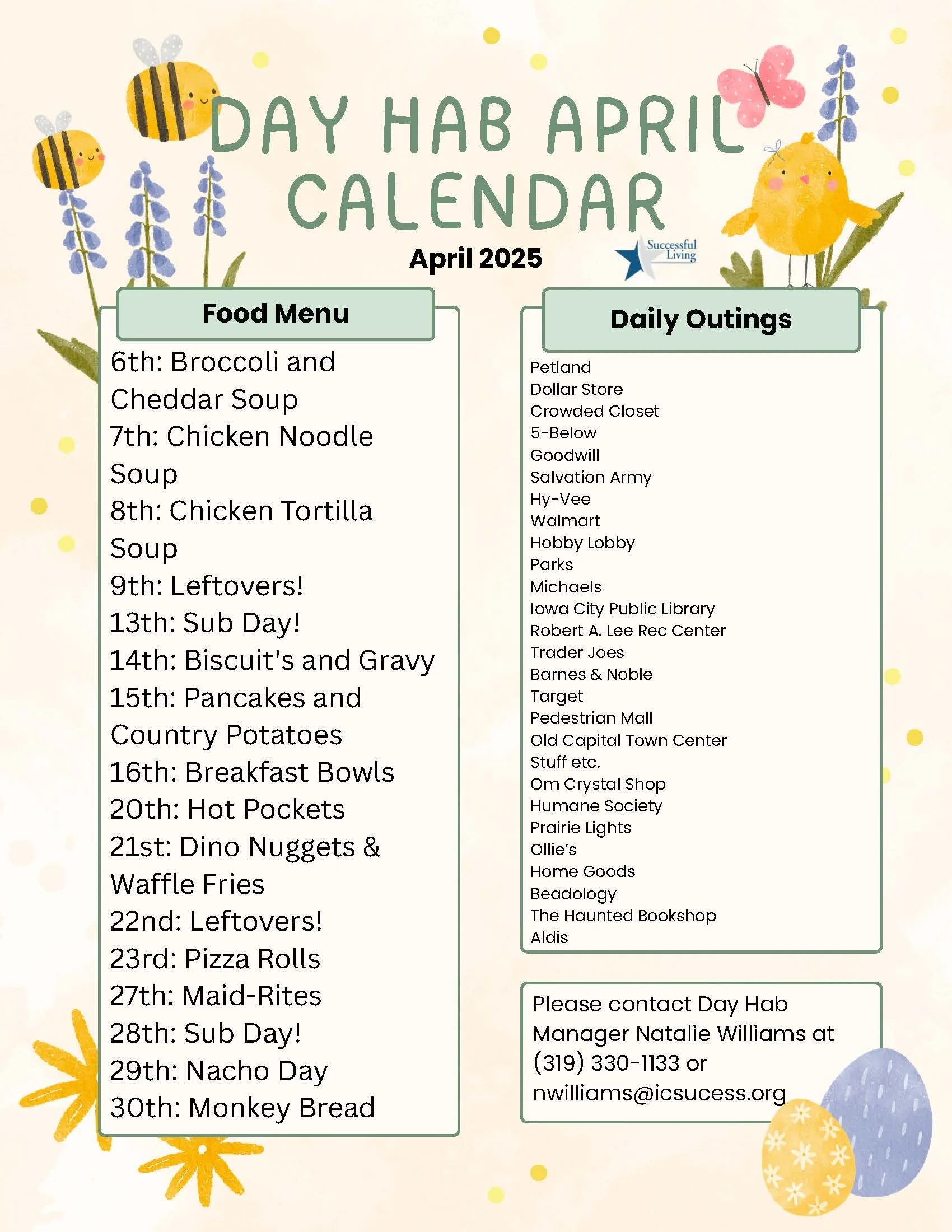 Day Hab Calendar of Events